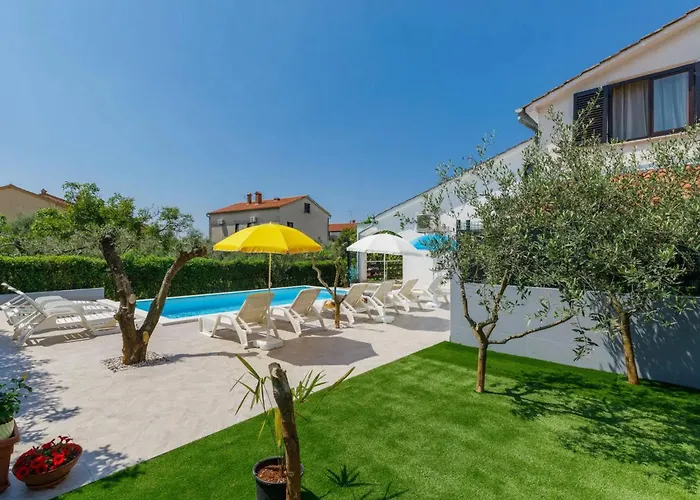 Elérhetőséggel az olyan természeti látnivalókhoz, mint a körülbelül 4 km-re található Baredine-barlang, a 2 hálószobás Vila Suncana Poreč úszómedencét is kínál. Az Eufráziusz-bazilika 10 percnyi autóútra található 2 fürdőszobás villa tengerre néző terasszal büszkélkedik.